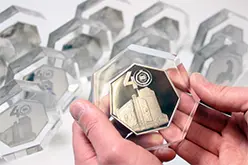 Mẫu kỷ niệm chương có đèn LED sáng rực rỡ sẽ làm tăng giá trị của sự vinh danh. Kiểu dáng có thể thay đổi theo ý nghĩa của sự kiện, theo logo hoặc theo yêu cầu.